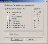Mode, Range Test & Auto Generation function It automatically generate the correct test mode and range for the designated component listed in the System Test Data. It makes test program generation much quicker and less error and reduce the time needed for test program generation. |